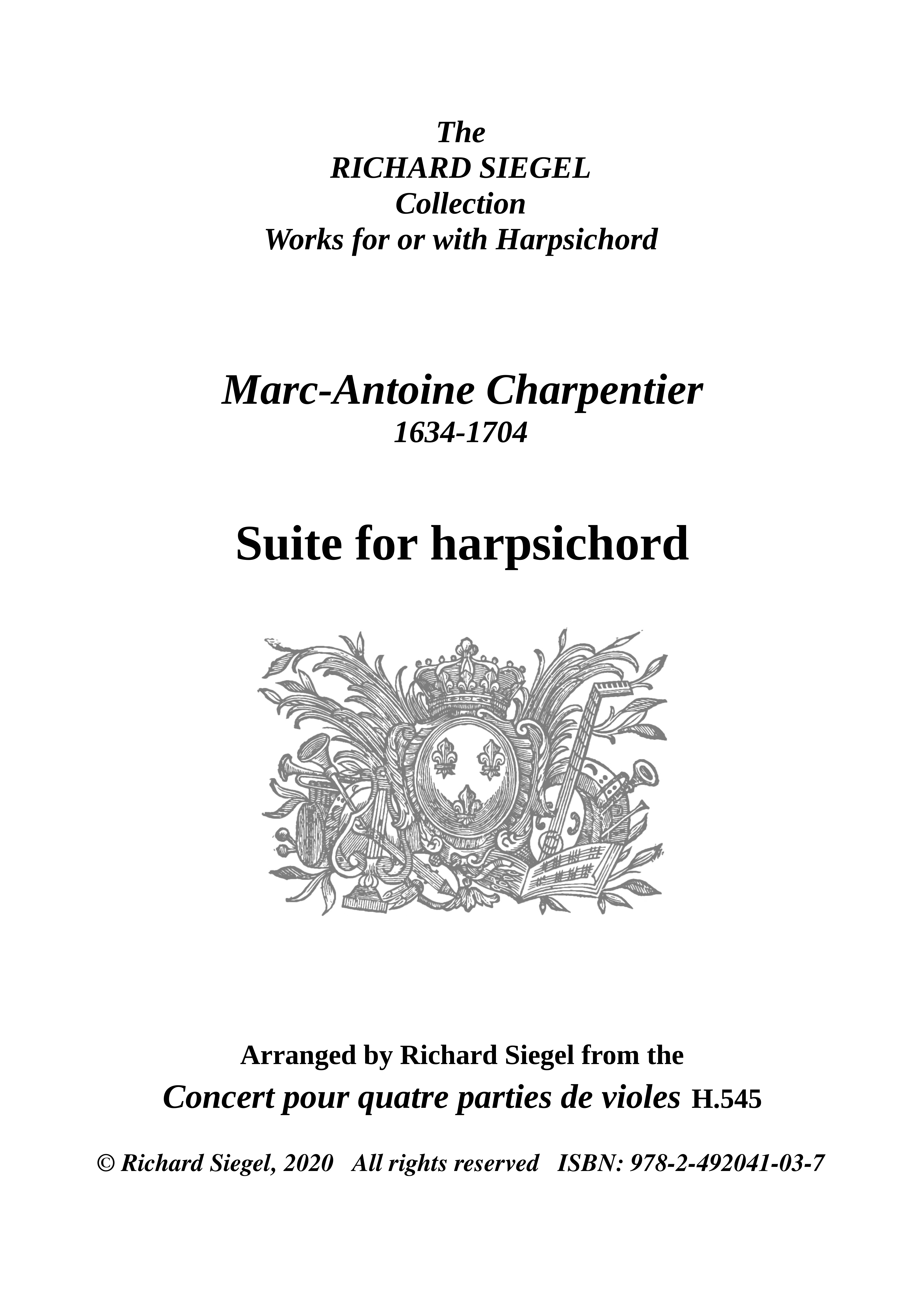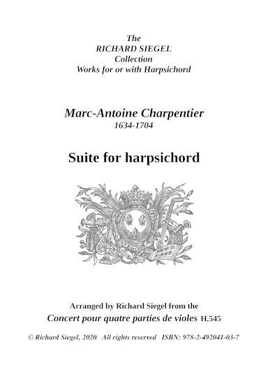Charpentier never wrote for solo harpsichord; that is what inspired me to make this arrangement of a work for viols. The polyphony is typical of his works, the false relations also, and this “Suite” should be a welcome addition to the harpsichord repertory.