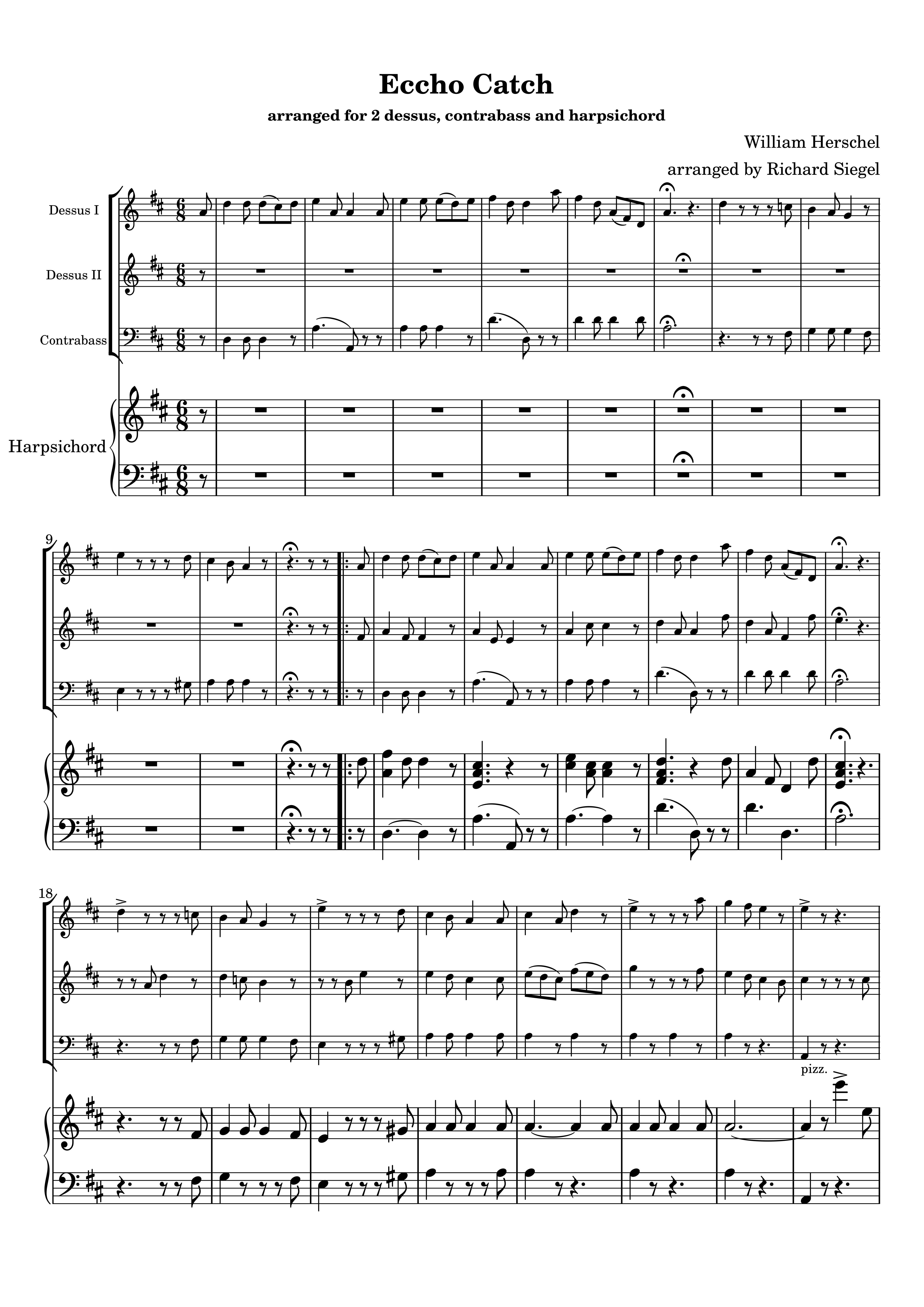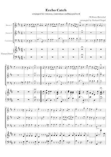 This catch (or round) became very popular in concerts both in Bath and in Vauxhall Gardens in London during Herschel’s lifetime. The original score called for a contrabass, something very unusual at the time. The echos were in the vocal parts; here it’s the harpsichord that answers the others.