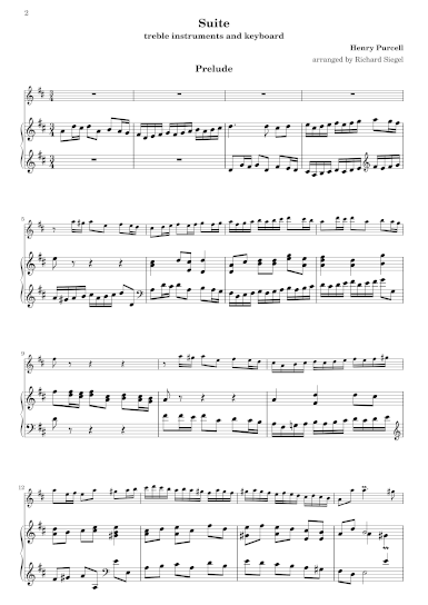 A series of pieces for harpsichord, arranged for treble instruments in C or in B-flat.